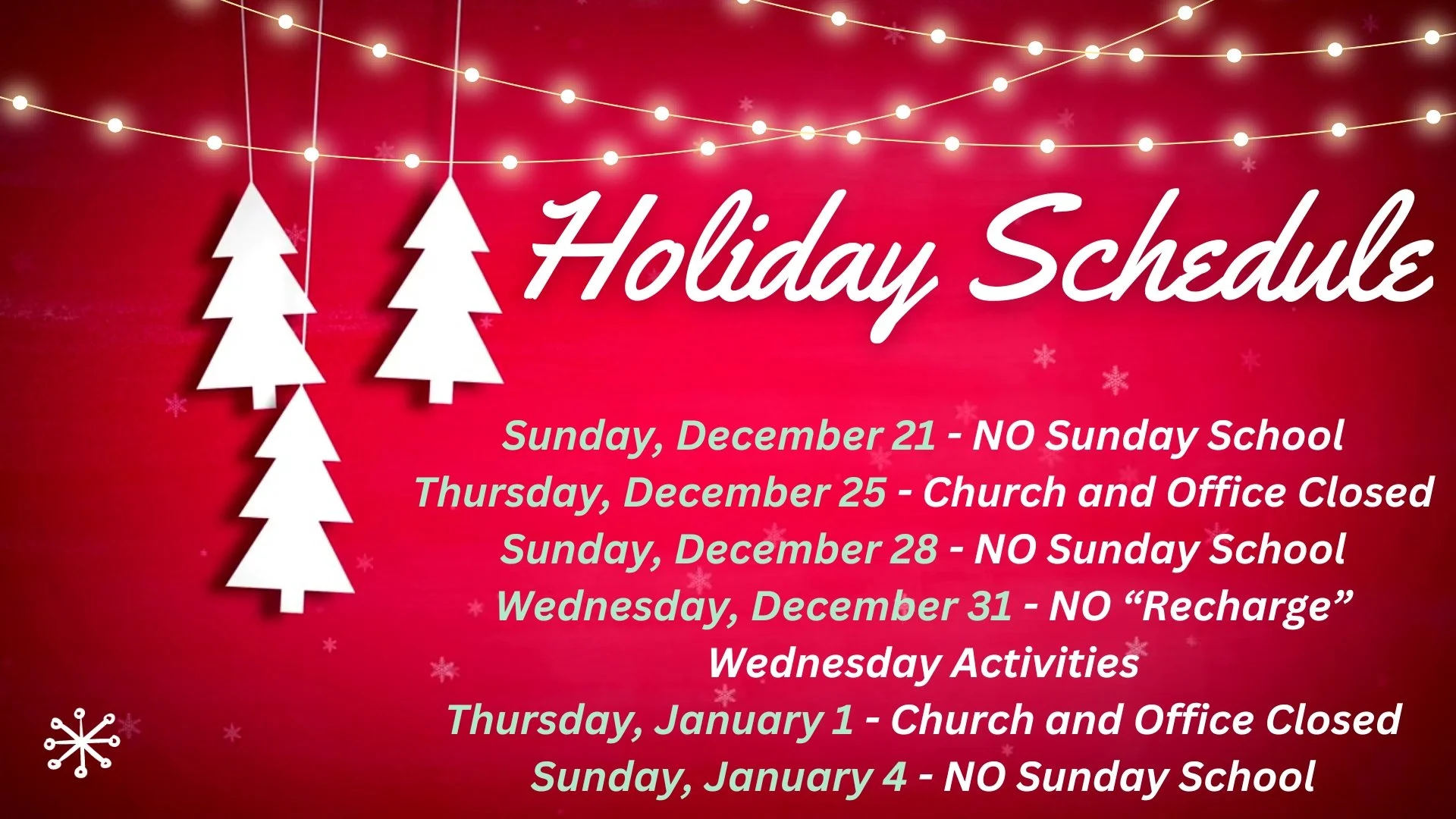This year’s Children’s Christmas Program is scheduled for Sunday, December 14, at 10:00 a.m. in the Sanctuary.