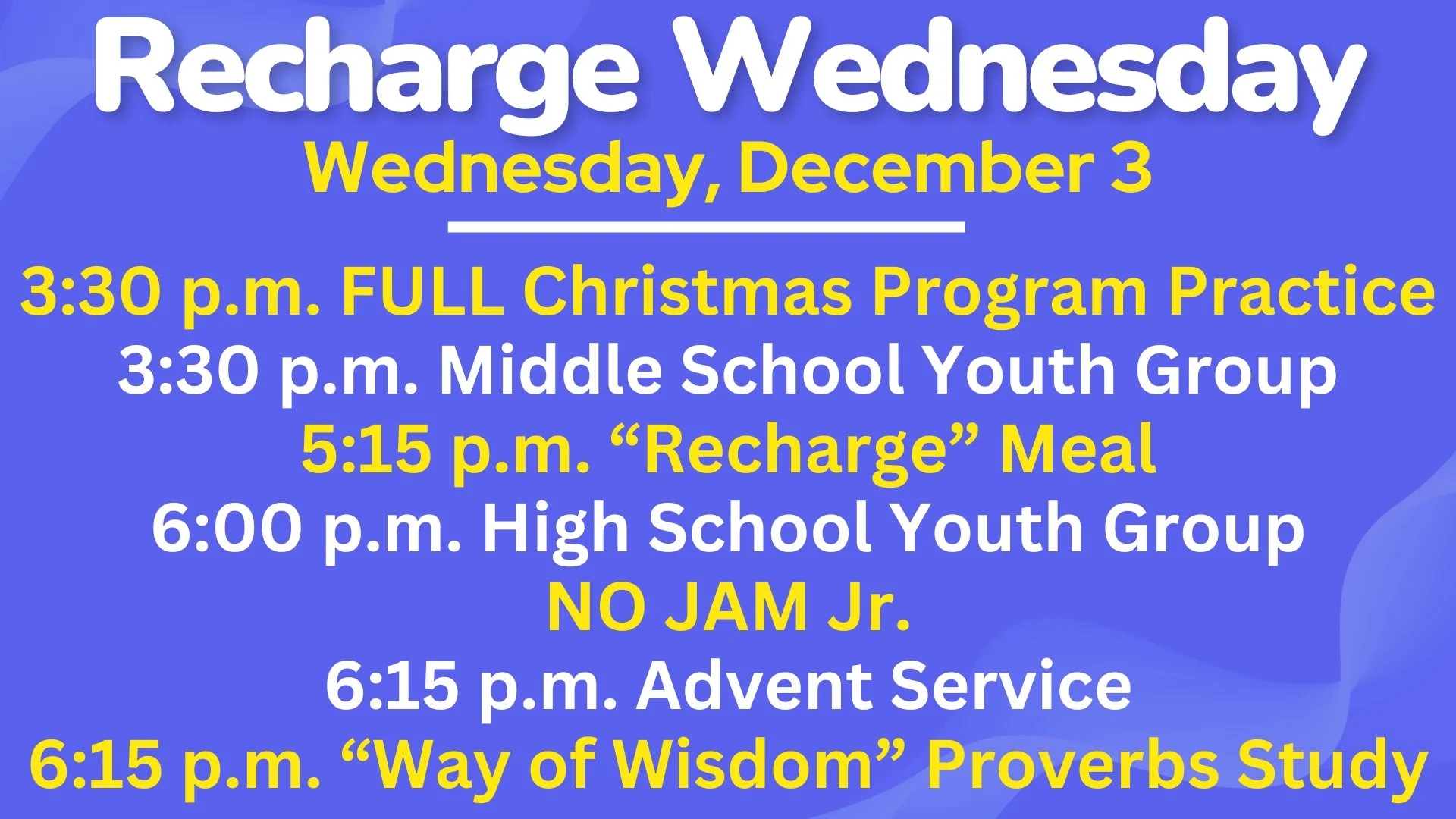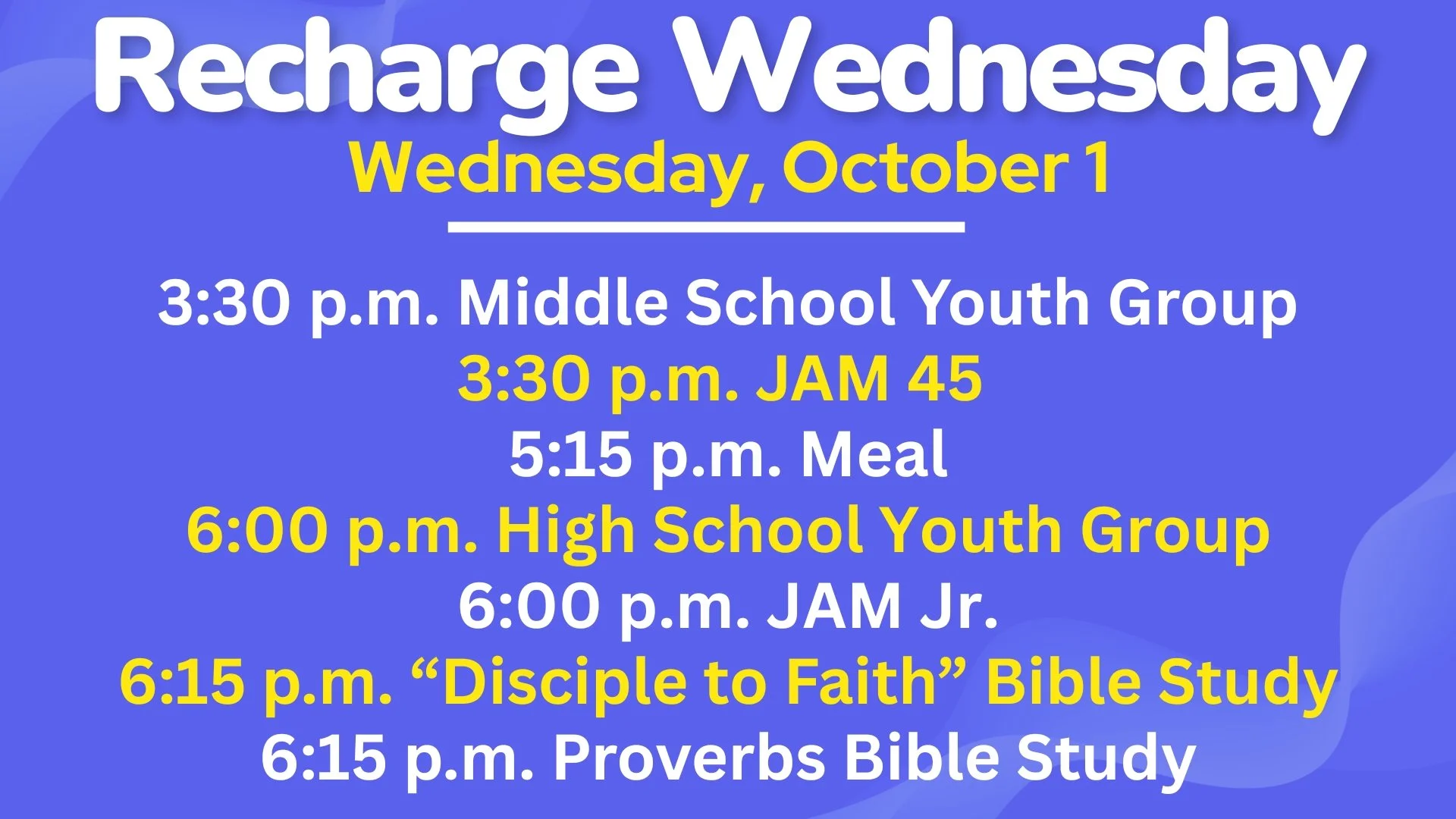 We are looking forward to seeing the church full on "Recharge” Wednesdays!